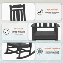 Gray Outdoor All-Weather HDPE Plastic Rocking Adirondack Chair With Coordinated Gliding Footrest