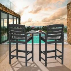 Gray Modern HDPE Plastic Adirondack Chairs, Outdoor Bar Stools With Connecting Tray (Set Of 2)
