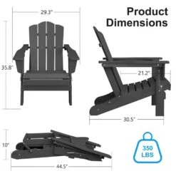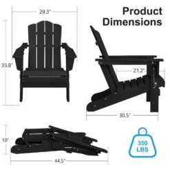 HDPE Classic Black Folding Plastic Adirondack Chair (1-Pack)