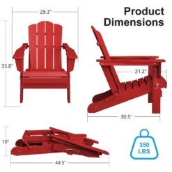 HDPE Classic Bright Red Folding Plastic Adirondack Chair (1-Pack)