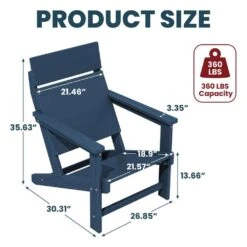 HDPE Navy Adirondack Chair-Panel-Back All-Weather Heavy Woodgrain For Garden, Poolside And Deck