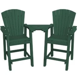HDPE Plastic Tall Adirondack Chair (Set Of 2) Outdoor Barstools With Connecting Tray In Green