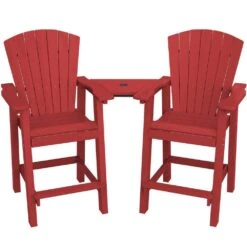 HDPE Plastic Tall Adirondack Chair (Set Of 2) Outdoor Barstools With Connecting Tray In Red