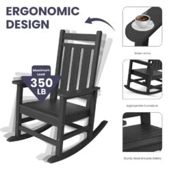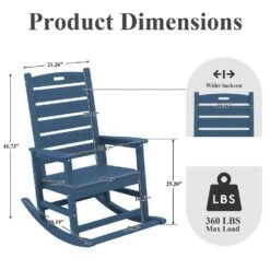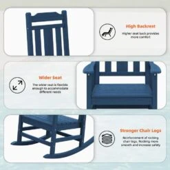 Navy Blue HDPE Plastic Adirondack Chair Outdoor Rocking Chair For Patio And Garden (1-Pack)
