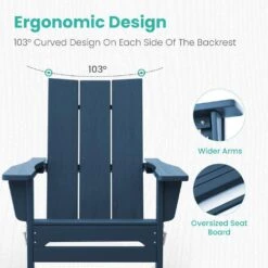 Navy HDPE Folding Plastic Adirondack Chair Weather Resistant Patio Plastic Fire Pit Chairs