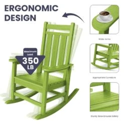 Oversized HDPE Resin Outdoor Patio Rocking Plastic Adirondack Chair In Apple Green (1-Pack)