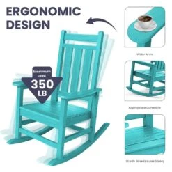 Oversized HDPE Resin Outdoor Patio Rocking Plastic Adirondack Chair In Aruba Blue (1-Pack)