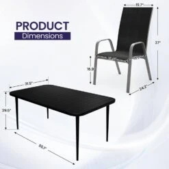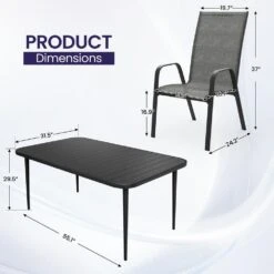 PEHD 7-Piece Plastic Rectangle Standard Height Outdoor Dining Set, Gray
