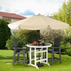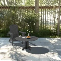 Gray Round HDPE Conversation Coffee Table, Weather Resistant Outdoor Dining Table