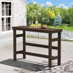 HDPE Rectangle Plastic Bar Height Outdoor Dining Table In Brown
