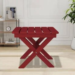 Dark Red HDPE Plastic Portable Patio End Table Folding Outdoor Coffee Table