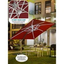Rectangular 10 Ft. X 10 Ft. Aluminum Solar Lighted Cantilever Patio Umbrella With Cover In Red