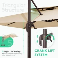 Rectangular 10 Ft. X 10 Ft. Aluminum Solar Lighted Cantilever Patio Umbrella With Cover In Gray