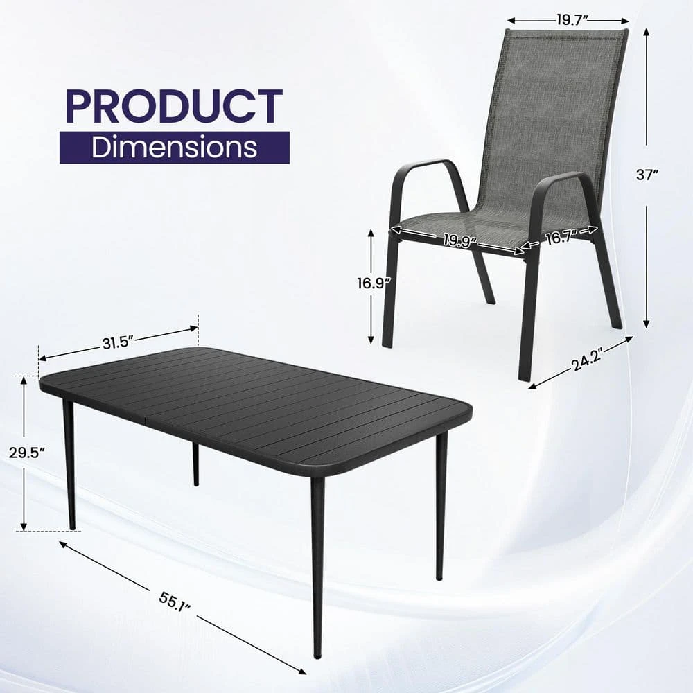 - Spacious dining table: the patio dining table is measured 55.1 in. D x 31.4 in. W x 29.5 in. H, which can holds up to 220 lbs. providing enough room to accommodate meals, drinks, and table decor