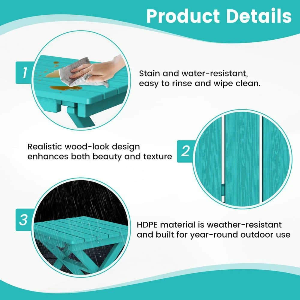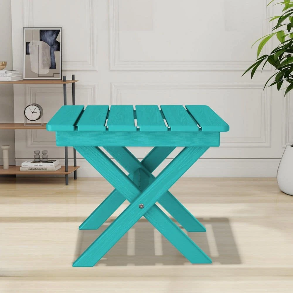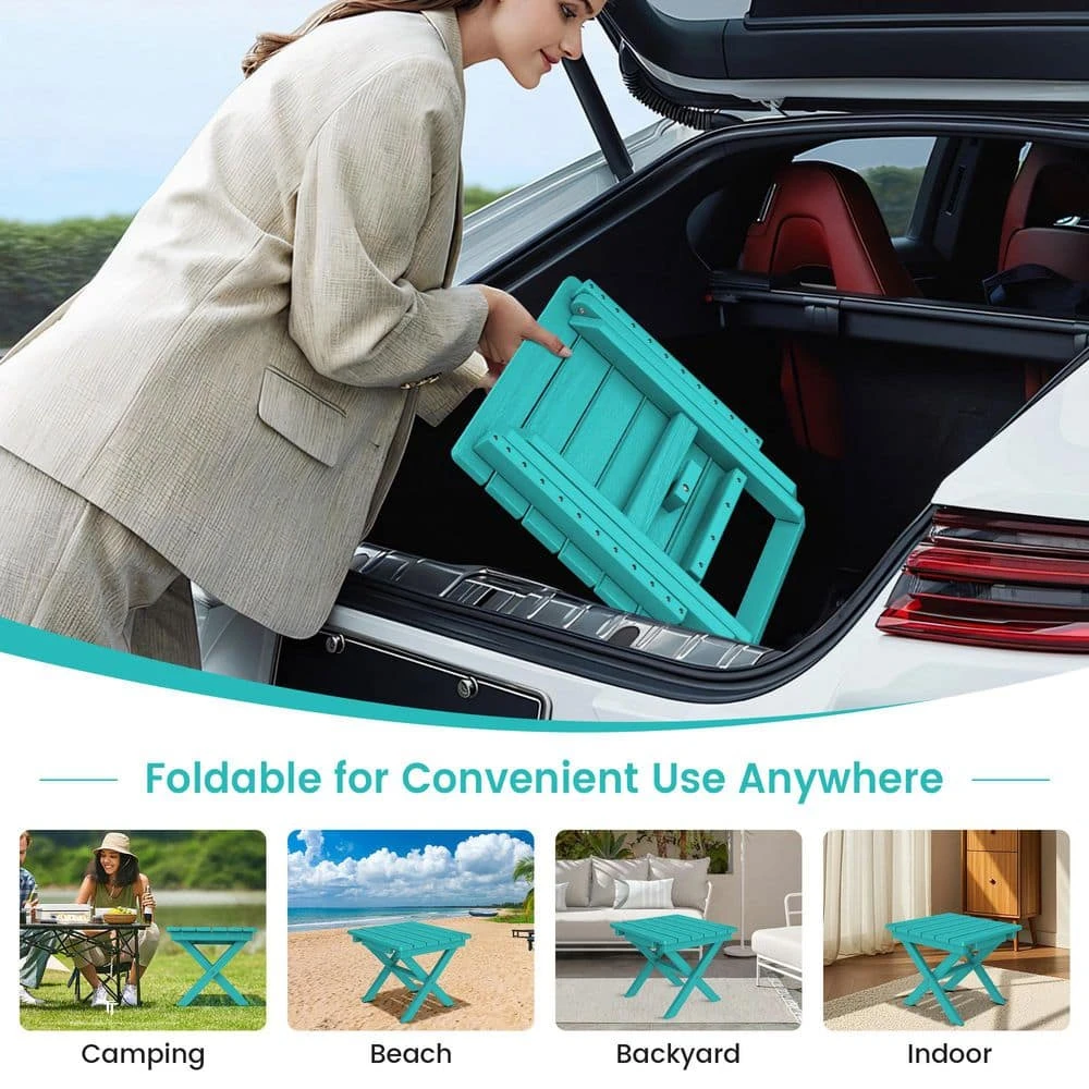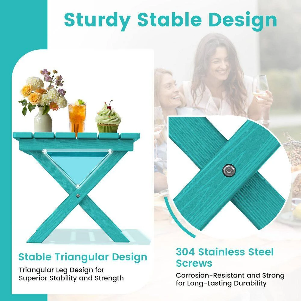 Peacock Blue HDPE Plastic Portable Patio End Table Folding Outdoor Coffee Table