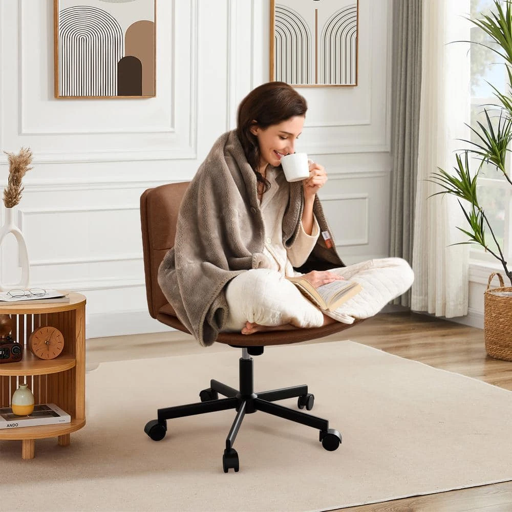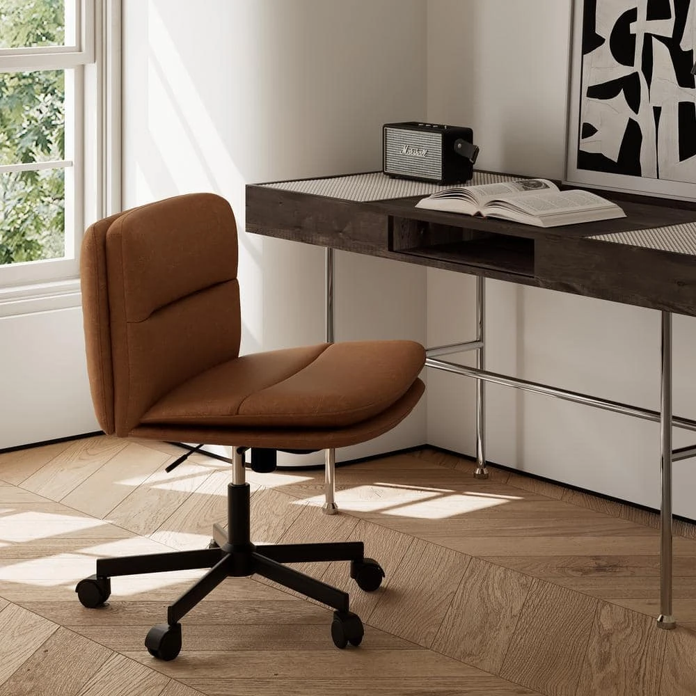- Faux leather fabric covering: the skin-friendly breathable faux leather fabric adds chic flair to your workspace and features a refined stitching detail along the edges to bring character and elegance to any office