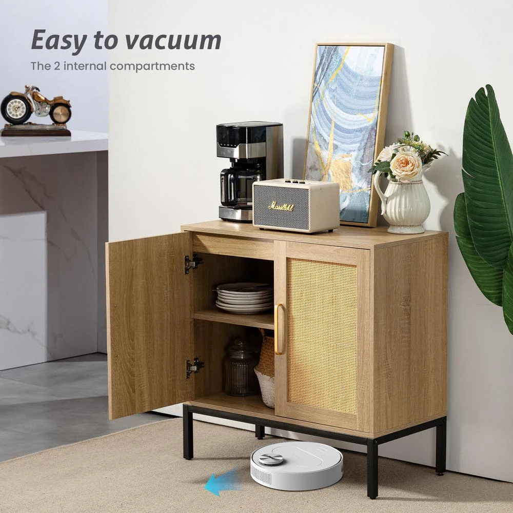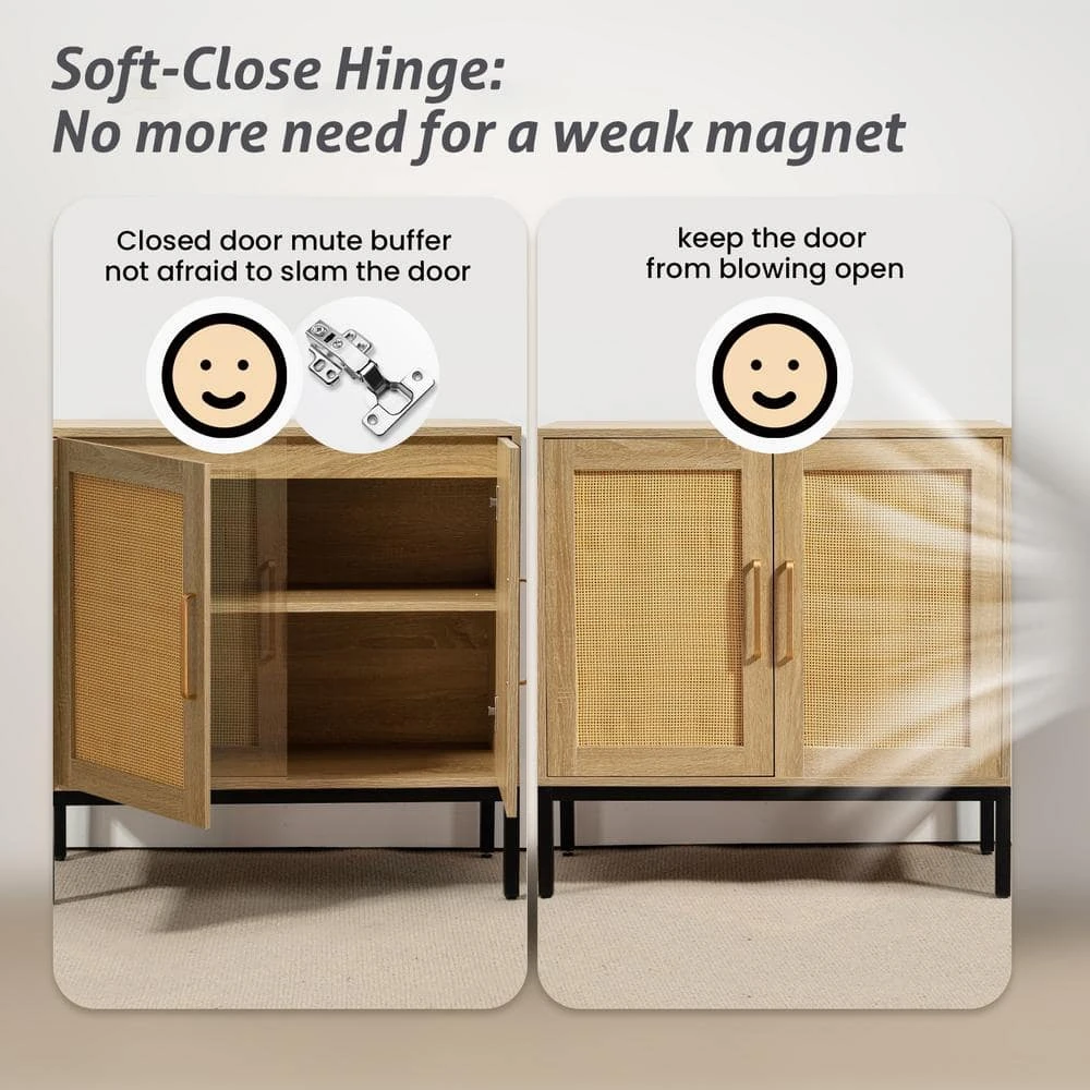 - Rattan decorated design: this stylish buffet sideboard cabinet features beautiful rattan decorative 2-doors the natural color and smooth surface of rattan provide a chic bohemian refined atmosphere to your living environment