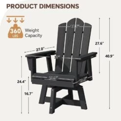 HDPE Outdoor Swivel Dining Chair Black HDPE Frame Swivel Dining Chair With Cloud Backrest