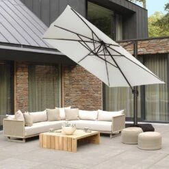 10 Ft. X 10 Ft. Square Cantilever Patio Umbrella With Weighted Base In Off-White