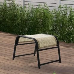 Textilene Fabric Metal Frame Beige Outdoor Ottoman With Navy Cushion For Patio (2-Pack)