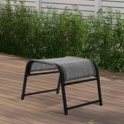 Textilene Fabric Metal Frame Gray Outdoor Ottoman With Navy Cushion For Patio (2-Pack)