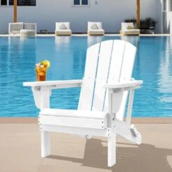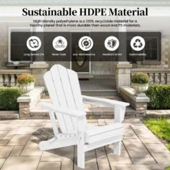 White Folding HDPE Outdoor Patio Plastic Adirondack Chair With Ergonomic Design (1-Pack)