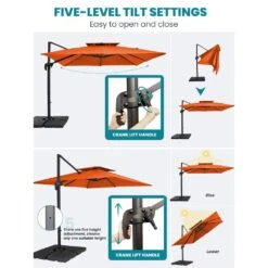 12 Ft. X 12 Ft. Square Two-Tier Top Rotation Outdoor Cantilever Patio Umbrella With Cover In Orange