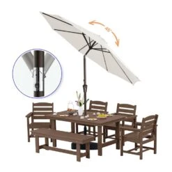 9 Ft. Outdoor Market Patio Umbrella With Hand Crank Lift In Beige