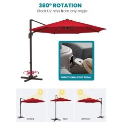 9 Ft. Round 360-Degree Rotation Cantilever Patio Umbrella In Red