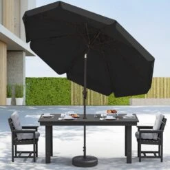 9 Ft. Steel Market Crank And Tilt Outdoor Patio Umbrella In Black