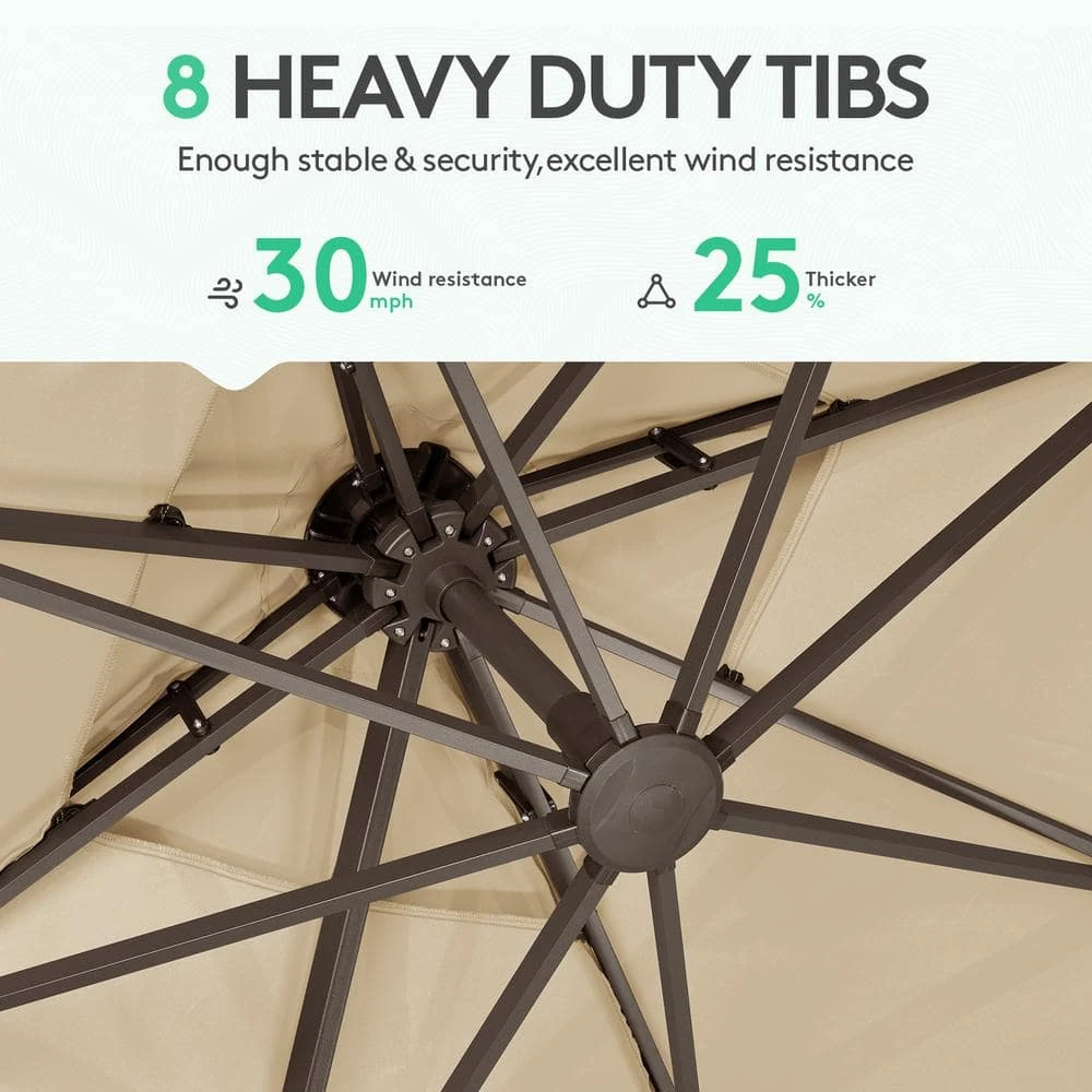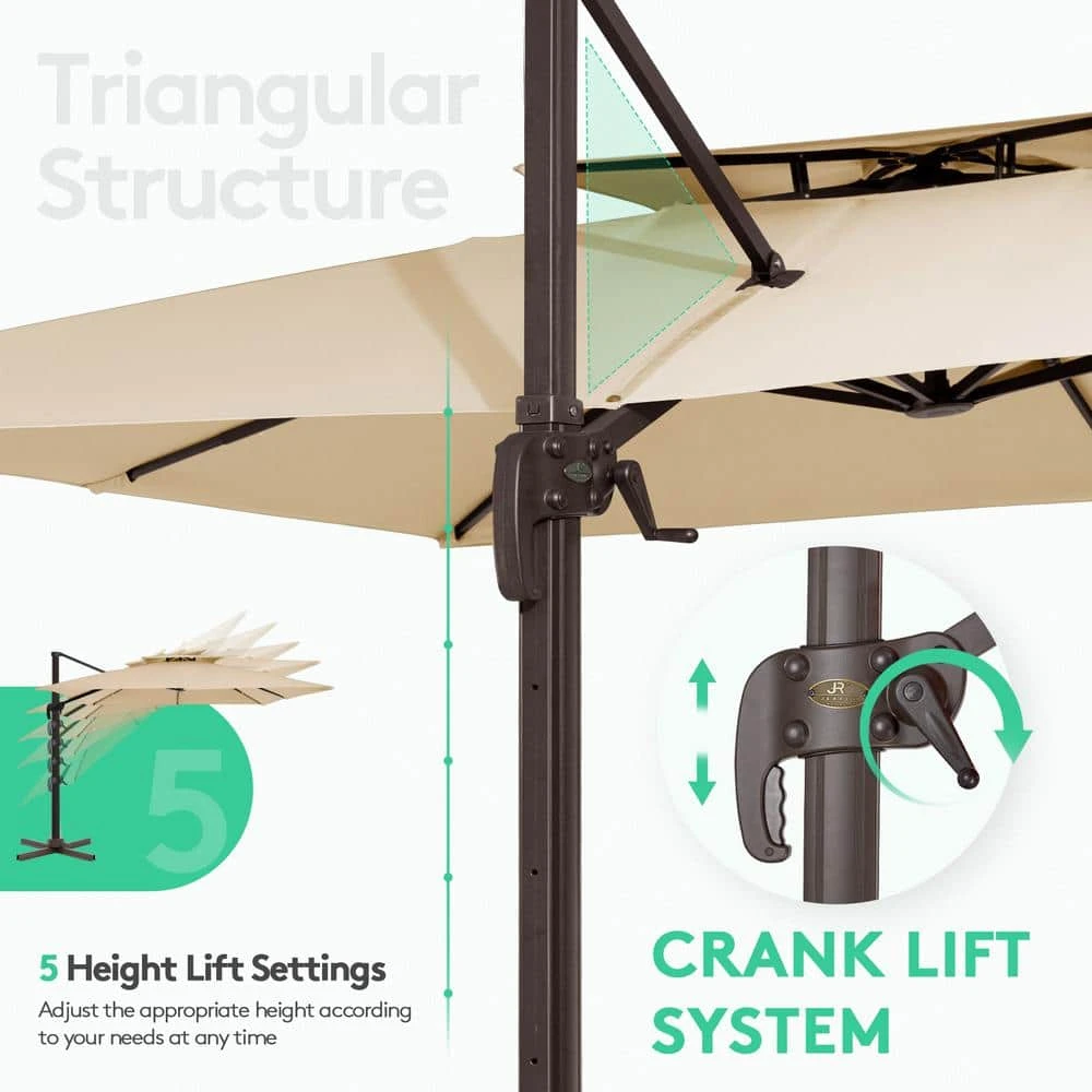SunShade Deluxe 10 Ft. Square Cantilever Umbrella With Cover Heavy-Duty 360° Rotation Patio Umbrella In Beige