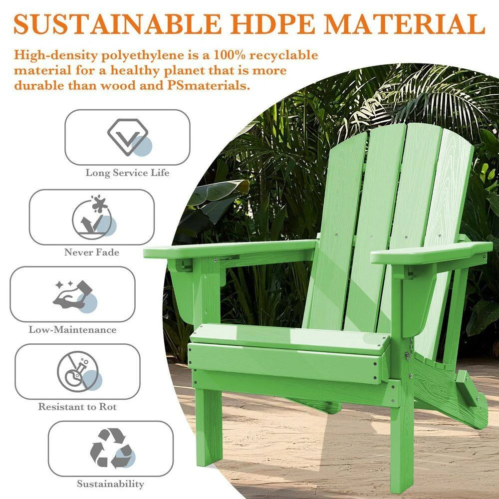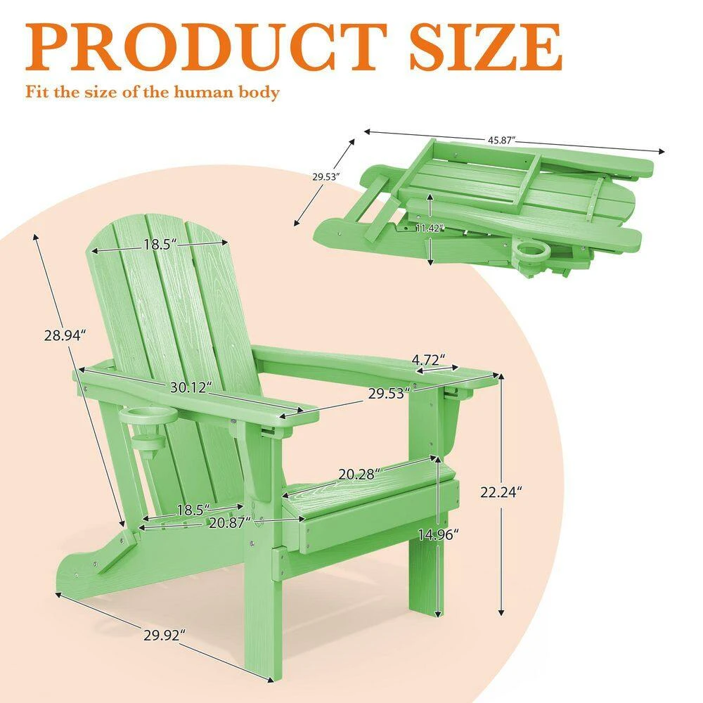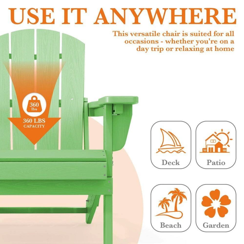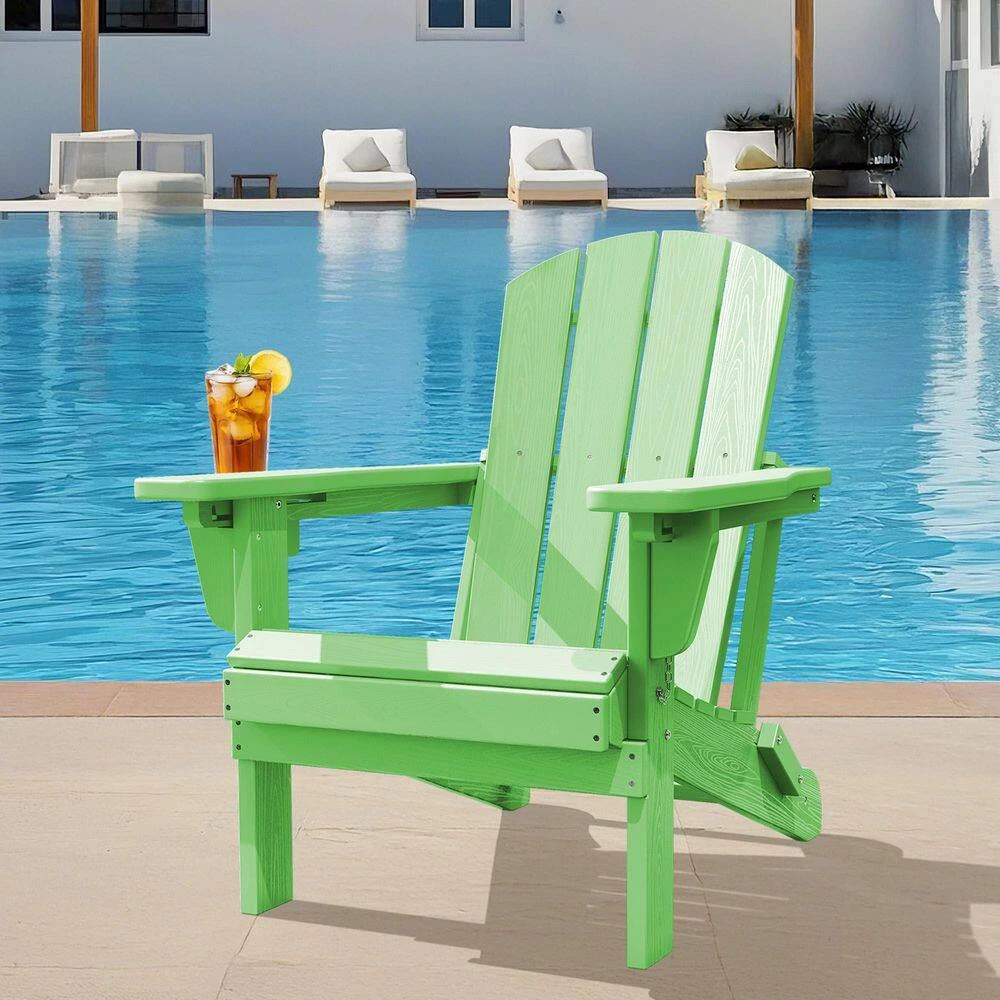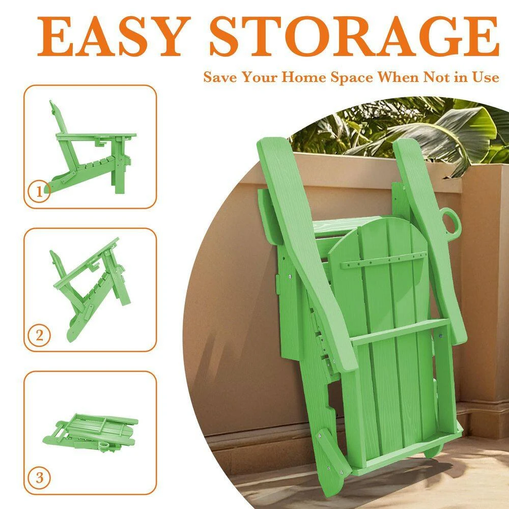 Weather Resistant Plastic HDPE Outdoor Patio Folding Adjustable Adirondack Chair With Cup Holder In Light Green