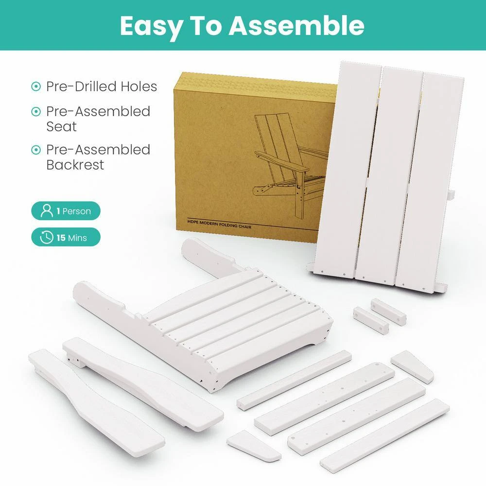 White Classic Folding HDPE Plastic Adirondack Chair