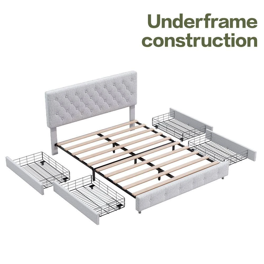 - Convenient storage solution: Say goodbye to clutter and hello to a tidy bedroom. Our queen storage bed frame comes with four spacious under-bed storage drawers on wheels. Ideal for organising out-of-season clothes, quilts and smaller items, these drawers ensure your belongings are neatly stored away. We also supply 4 matching drawer liners to prevent tipping and keep everything in place to protect your belongings.